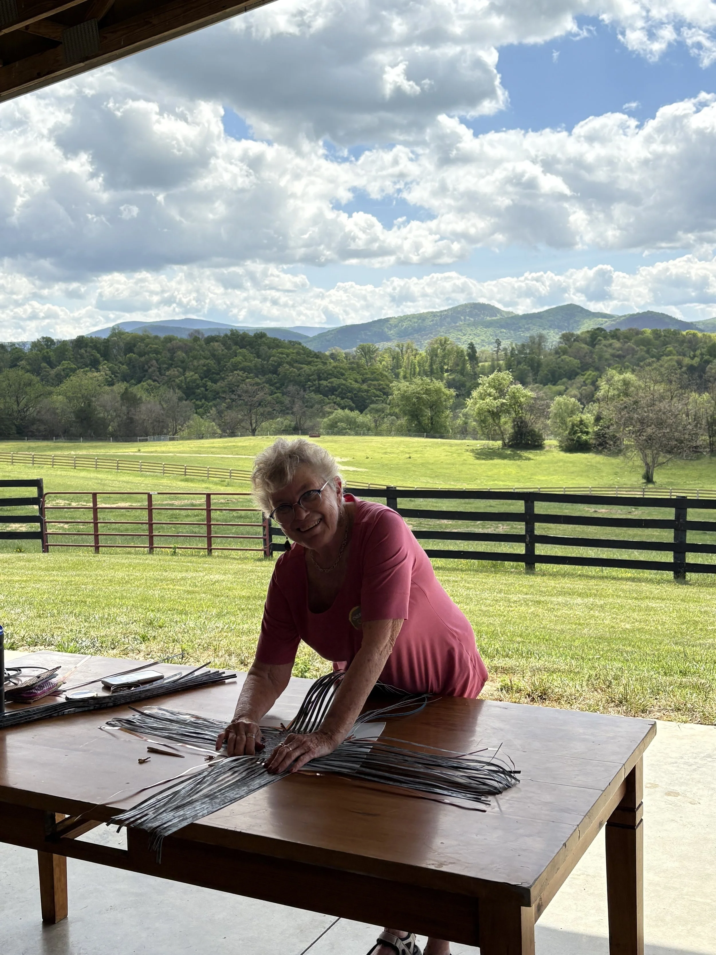 Cass has been weaving bark baskets since 1981 and teaching since 1985. The unique aspect of Cass’ basketry is that she gathers and prepares all the materials she weaves and teaches with.
